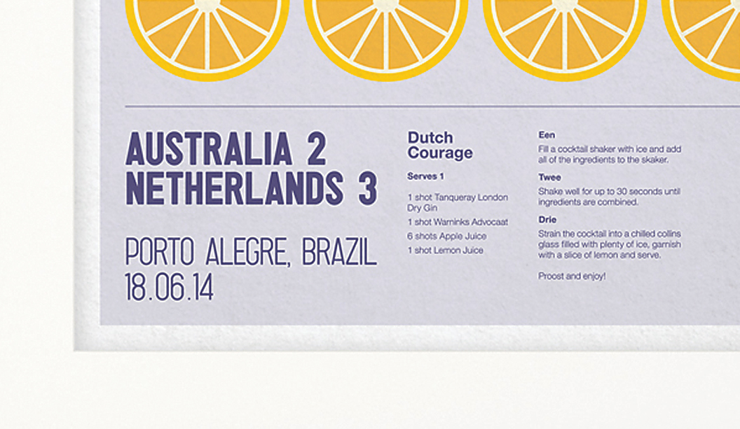 To celebrate the 2014 FIFA World Cup™, The Bureau in Melbourne created a series of illustrated posters complete with match details and recipe instructions so you can kick off your own ‘cocktail cup’ at home. Genius! It’s a special time of year, as the studio puts it: “We all suddenly become experts on match tactics and whether Tim Cahill is better in the air or with his feet!”